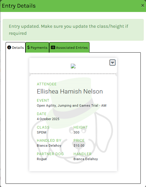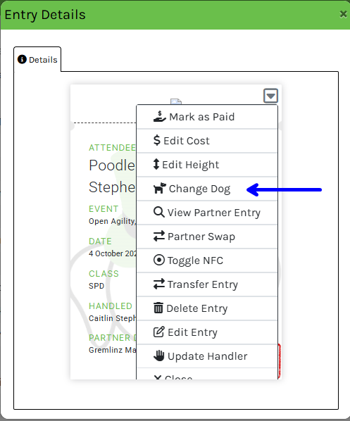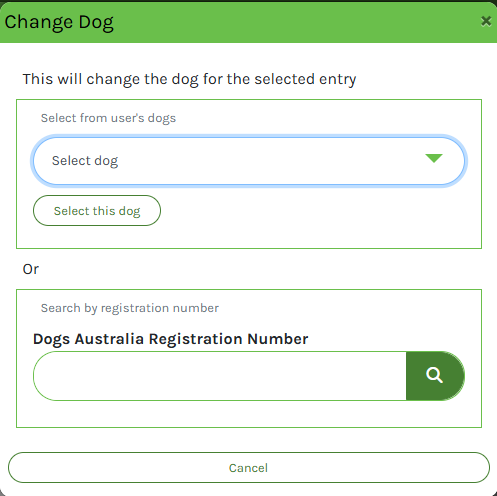 If the user has multiple dogs on their account, you will see a drop down list. Alternatively, search for the dog by registration number
