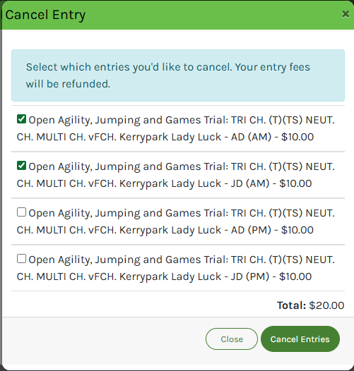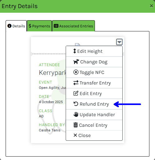 Refunding can be done by a trial secretary up to any point until a payout for an event/trial has been processed.